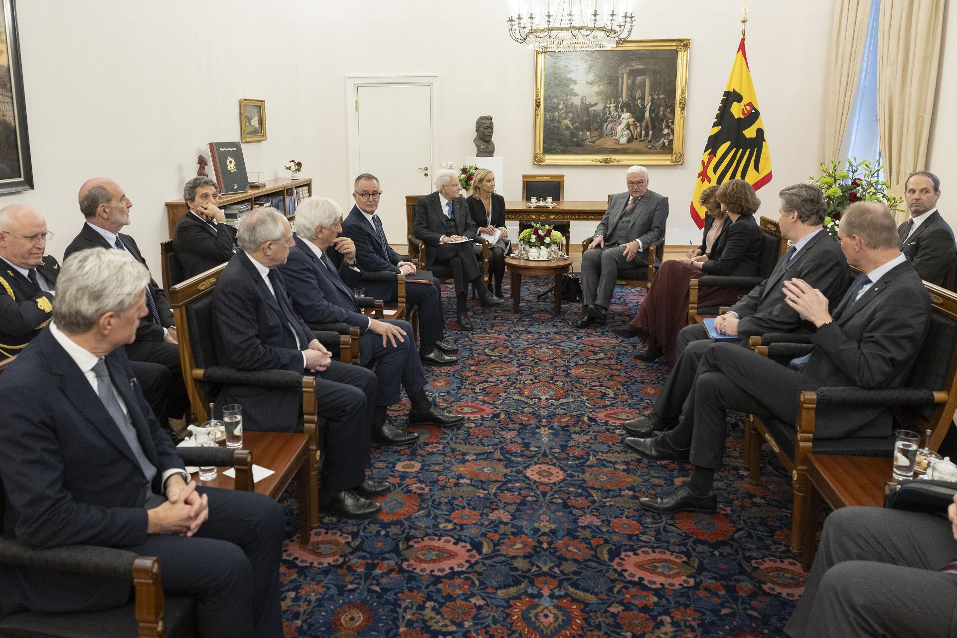 Premio dei Presidenti. Sabato 15 novembre, Mattarella sarà ricevuto nel pomeriggio da Steinmeier a Palazzo Bellevue, residenza ufficiale del Presidente Federale di Germania. I due Presidenti, nell’ambito della cerimonia di consegna del Premio dei Presidenti, premieranno i vincitori di questa edizione.
