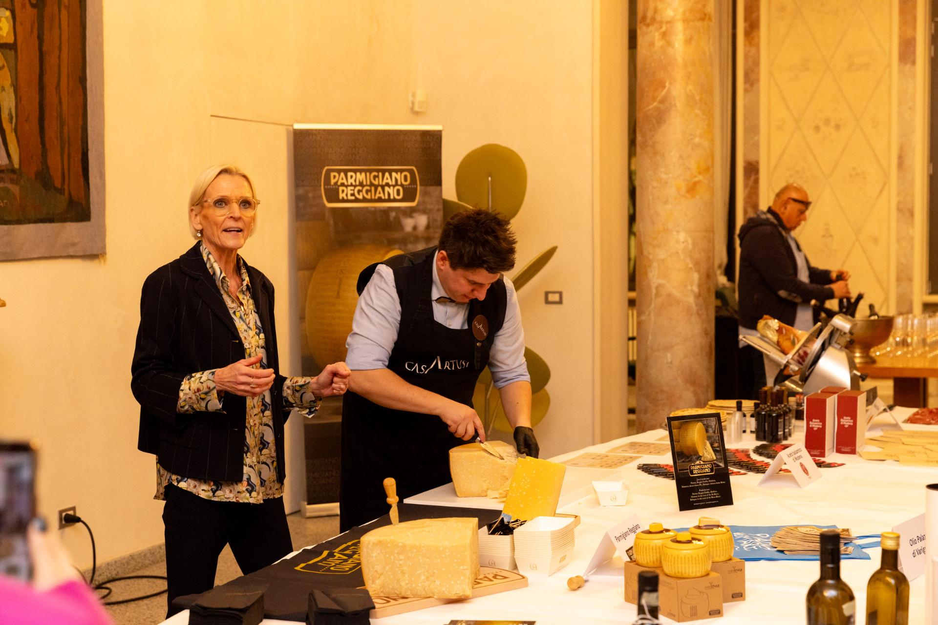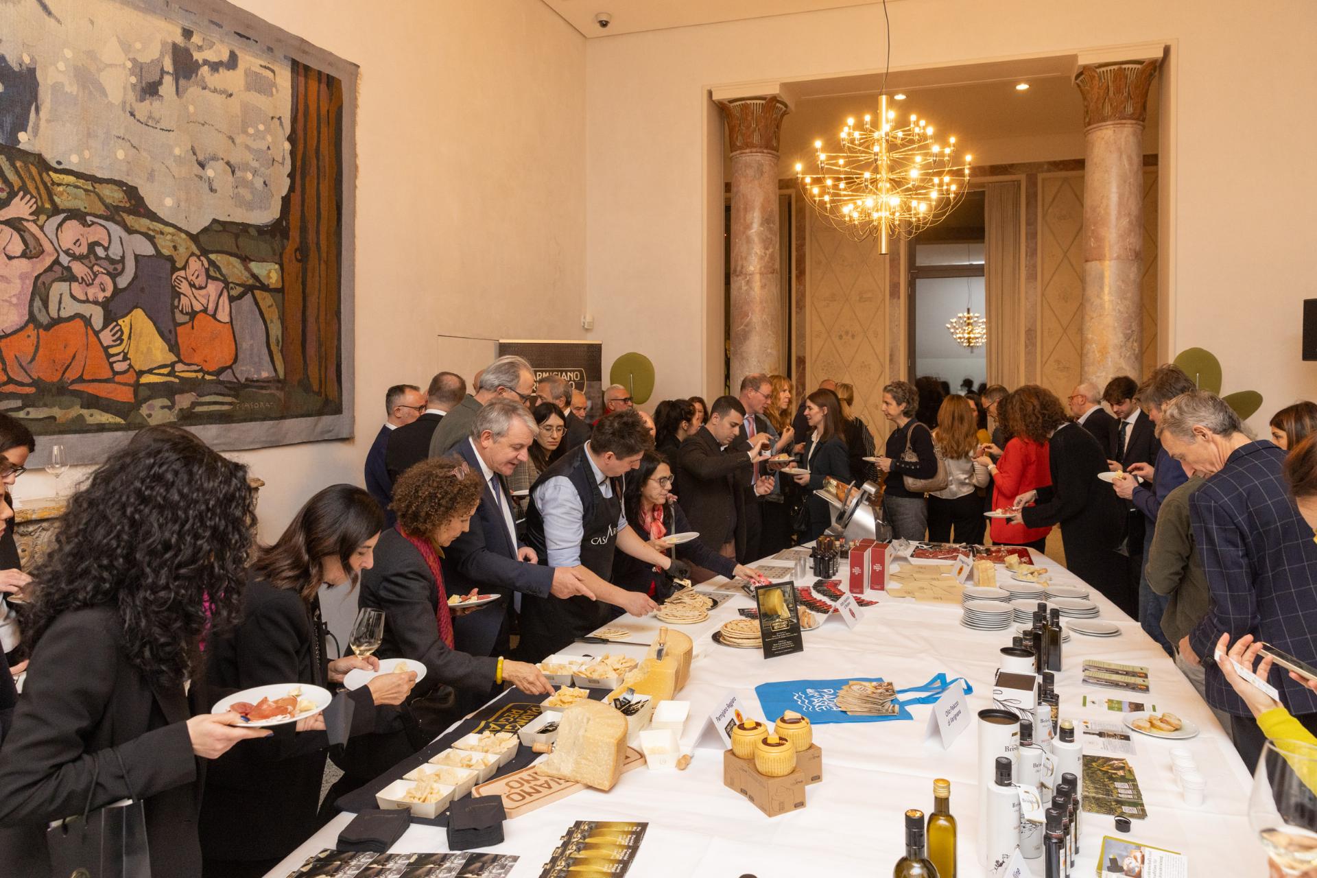 Il 25 novembre l’Ambasciata ha ospitato nel pomeriggio due eventi dedicati alle eccellenze dell’Emilia-Romagna, regione protagonista dell’edizione berlinese: una masterclass sull’olio EVO di Brisighella, in collaborazione con ITALCAM, e una presentazione del “cluster agrifood” e “turismo” della Regione. A seguire ha avuto luogo una degustazione di olio EVO, aceto balsamico e Parmigiano Reggiano, firmata da uno chef di Casa Artusi.