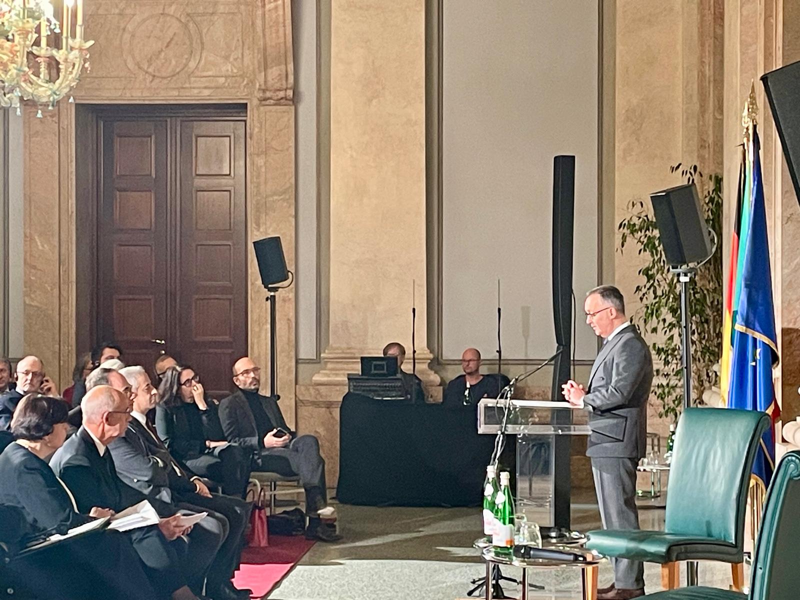 L’Ambasciatore Fabrizio Bucci nell’introdurre la serata insieme al Presidente di Villa Vigoni, l’Ambasciatore Luigi Mattiolo, ha sottolineato come il rapporto tra Germania e Italia rappresenti un legame tra i più intensi in Europa in tutti gli ambiti. “Questo dinamismo bilaterale non avvantaggia soltanto le economie dei nostri due Paesi. Le sfide geopolitiche, le trasformazioni dell’economia globale, le transizioni digitale ed ecologica richiedono infatti risposte europee: risposte che solo una cooperazione intensa tra i nostri due Paesi può contribuire a rendere efficaci.”