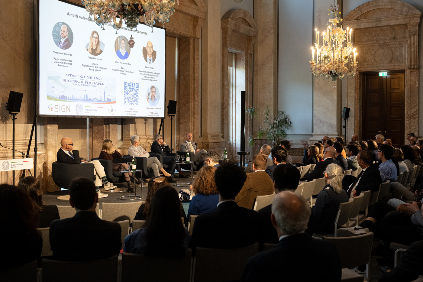 L’Ambasciata ha celebrato la Giornata della ricerca italiana nel mondo con due iniziative. Innanzitutto sono stati riuniti gli Stati Generali della Ricerca Italiana in Germania per fare il punto su presenza, ruolo e prospettive della comunità scientifica italiana, trasformando analisi e criticità in proposte operative e indirizzi di policy condivisi. L’iniziativa è stata realizzata insieme alle due associazioni di ricercatori italiani in Germania, Scienziati Italiani in Germania Network (SIGN) di Berlino e Forum Accademico Italiano (FAI) di Colonia. A seguire, un focus dedicato alle tecnologie quantistiche dal titolo “Quantum Reseaerch, Industry and the Arts”.